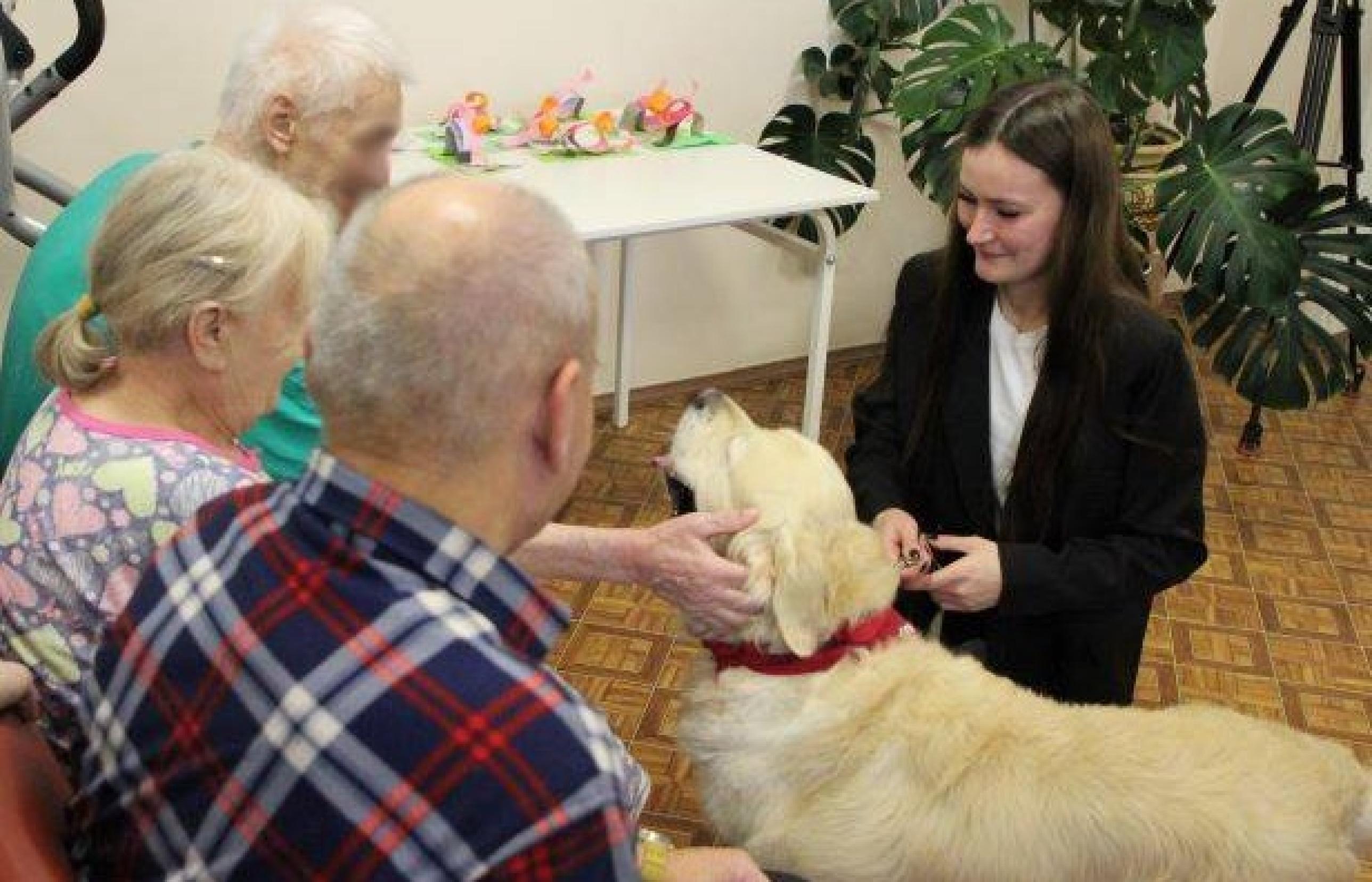 Пес по кличке Амур помогает пациентам больниц в реабилитации