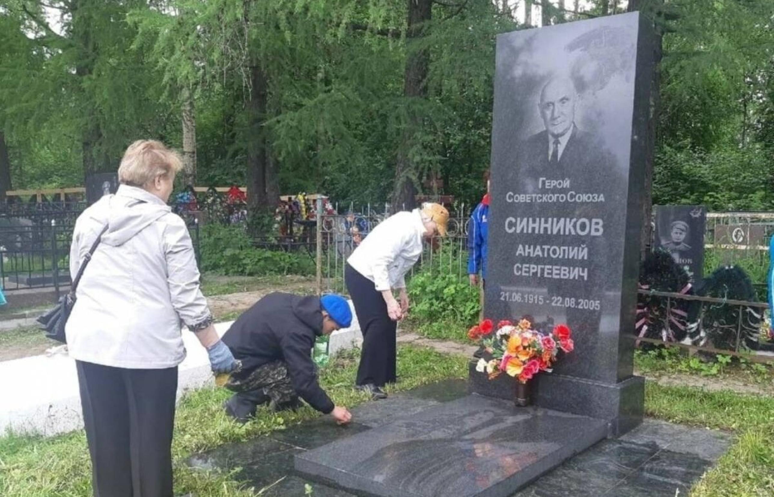 Пережил он не только своих друзей-однополчан, но и любимую супругу Анну Александровну, а также двоих сыновей — Виктора и Сергея. Все трое похоронены на старом Маймаксанском кладбище. А Герою Советского Союза, известному ученому-лесоводу Анатолию Синникову выпала большая честь быть упокоенным рядом с воинским мемориалом на Кузнечевском (Вологодском) кладбище. Его памятник заметен издалека, и все идущие мимо видят крупные буквы «Герой Советского Союза». Сюда же 9 Мая приходят горожане на митинги Победы — читают стихи и поют военные песни…