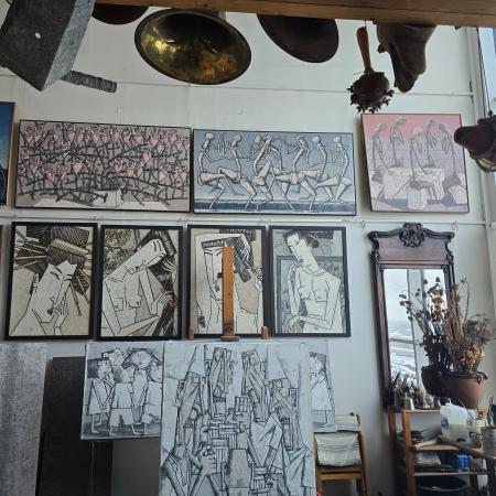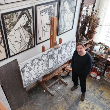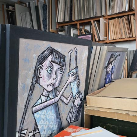 Мы побывали в мастерской художника, увидели его рабочее пространство и поговорили о высоком.
