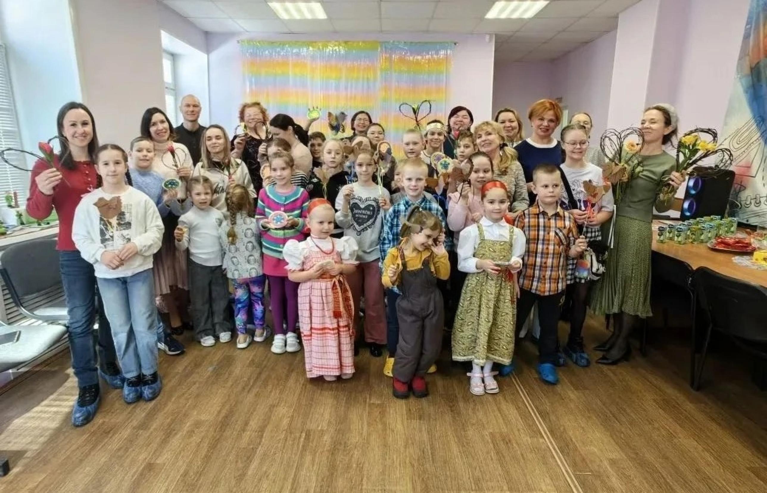 После участники встречи показывали друг другу свои поделки, водили весенний хоровод и ели конфеты! По традиции Надежда Виноградова организовала для детворы сладкое угощение.