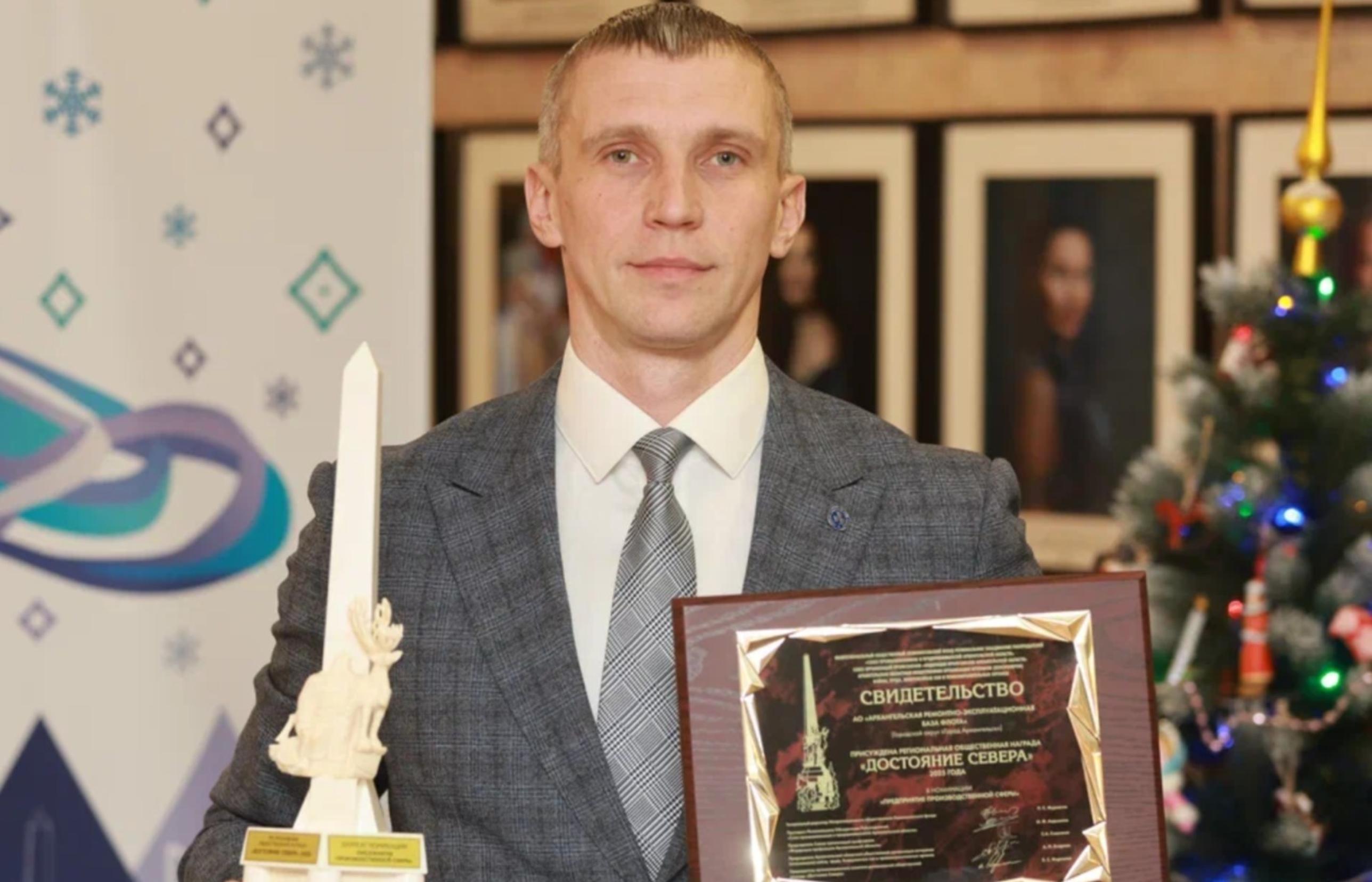 На торжественной церемонии почетный знак «Обелиск Севера» и свидетельство генеральному директору предприятия Антону Крушельницкому вручил первый заместитель губернатора — председатель правительства Архангельской области Алексей Алсуфьев.